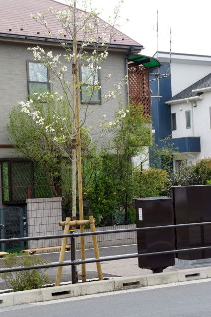 相原駅西側の八千代銀行、カネコ洋品店のところで町田街道に交わる道路に はなみずき(ホワイトラブ)が並木として植えられ、今、白い花を咲かせています。(2014年4月22日)