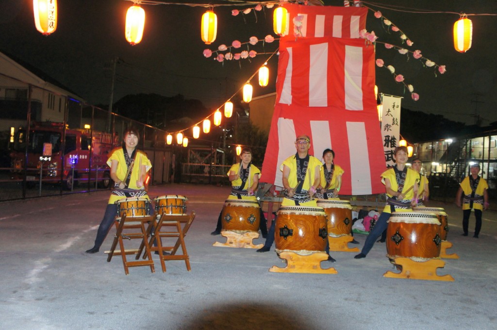 中間で太鼓の演奏、夜空に映える大輪の打ち上げ花火など楽しい1夜でした。