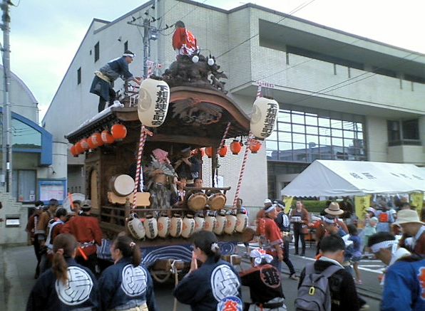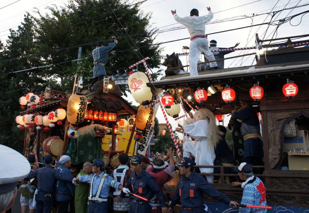 諏訪神社入り口参道前で、中相原の山車と下相原連合の山車が見合い、お囃子合戦を展開。たくさんの見物客が愉しみました。その後、迎えの丸山神輿に導かれて諏訪神社に入って行き、祭りも最高潮の盛り上がりを見せました。