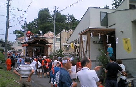 写真は、8月17日、各町会の休憩場所に 到着した時の様子です。各町会ごとに工夫した接待準備を行い山車の到着を待ちます。 今年は珍しく、1度も雨に当たらず例大祭が盛大に行われました。