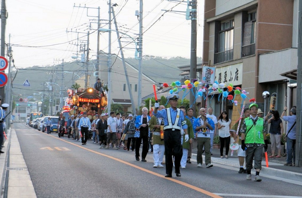 下相原連合町会6町会(中村町内会、陽田町会、仲町会、元橋町会、坂下町会、境町会)は諏訪神社例大祭に向け、合同で毎年恒例の山車の巡行を行います。 山車は約5時間掛け、各町会を回り、諏訪神社入り口で中相原町会の山車と競い合い、神社へ入ります。